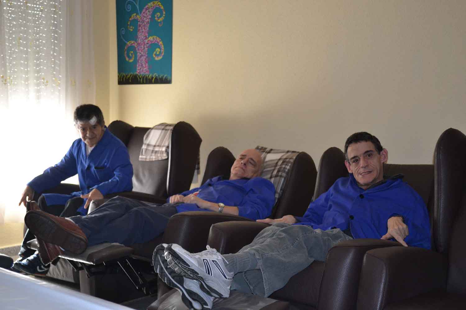 Esta sala se utiliza para atender las necesidades específicas de descanso que requieren estas personas mayores. Está equipada con sillones de relax, televisión, equipo de música, prensa, etc.